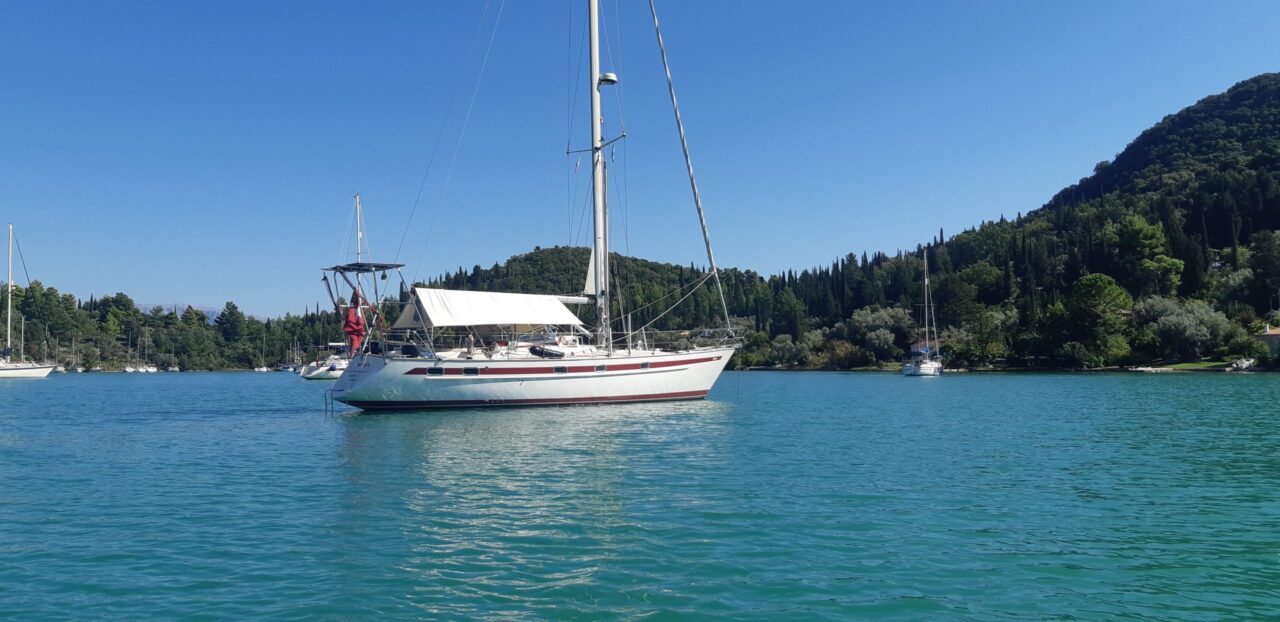 Vi forlod Lefkas by og sejlede ned til Nydri, som i højsæsonen er fuld af turister. Der udlejes vandsportsudstyr og arrangeres sejlture til nærområdets øer og seværdigheder. Men nu går sæsonen på hæld og mange ting lukker ned. Der er dog stadig mange sejlere.
