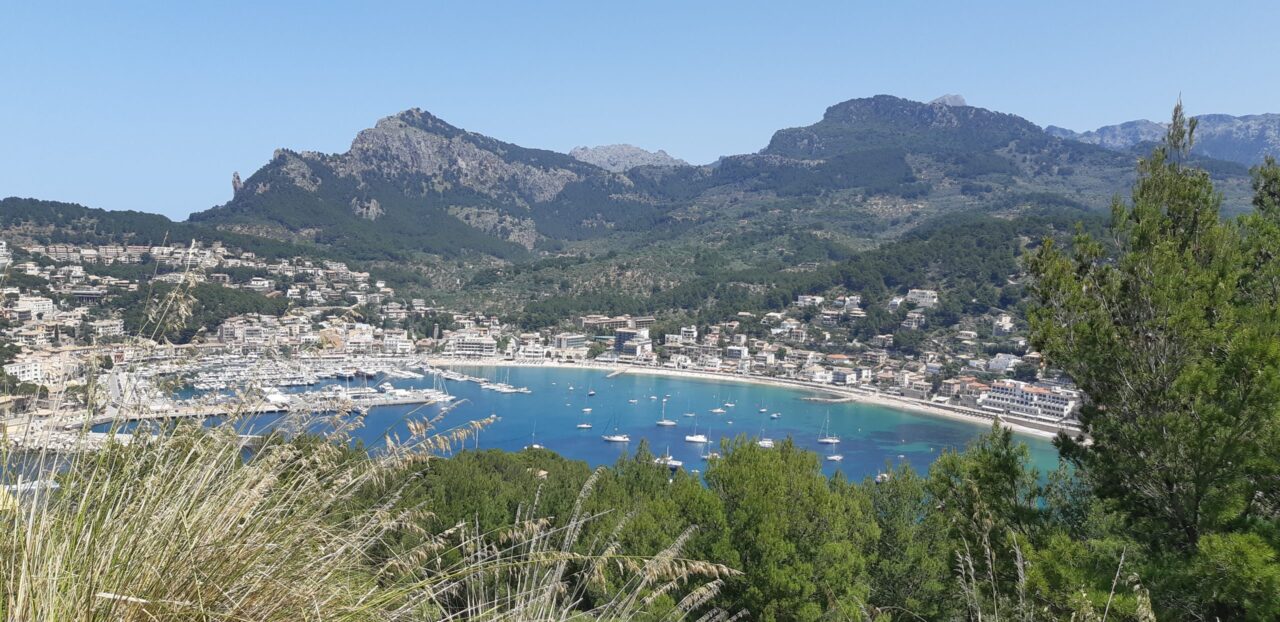 Ca 1½ time efter Port Soller kommer vi til denne flotte bugt. Her er mange gode og også krævende vandringsmuligheder til bjergene bagved.